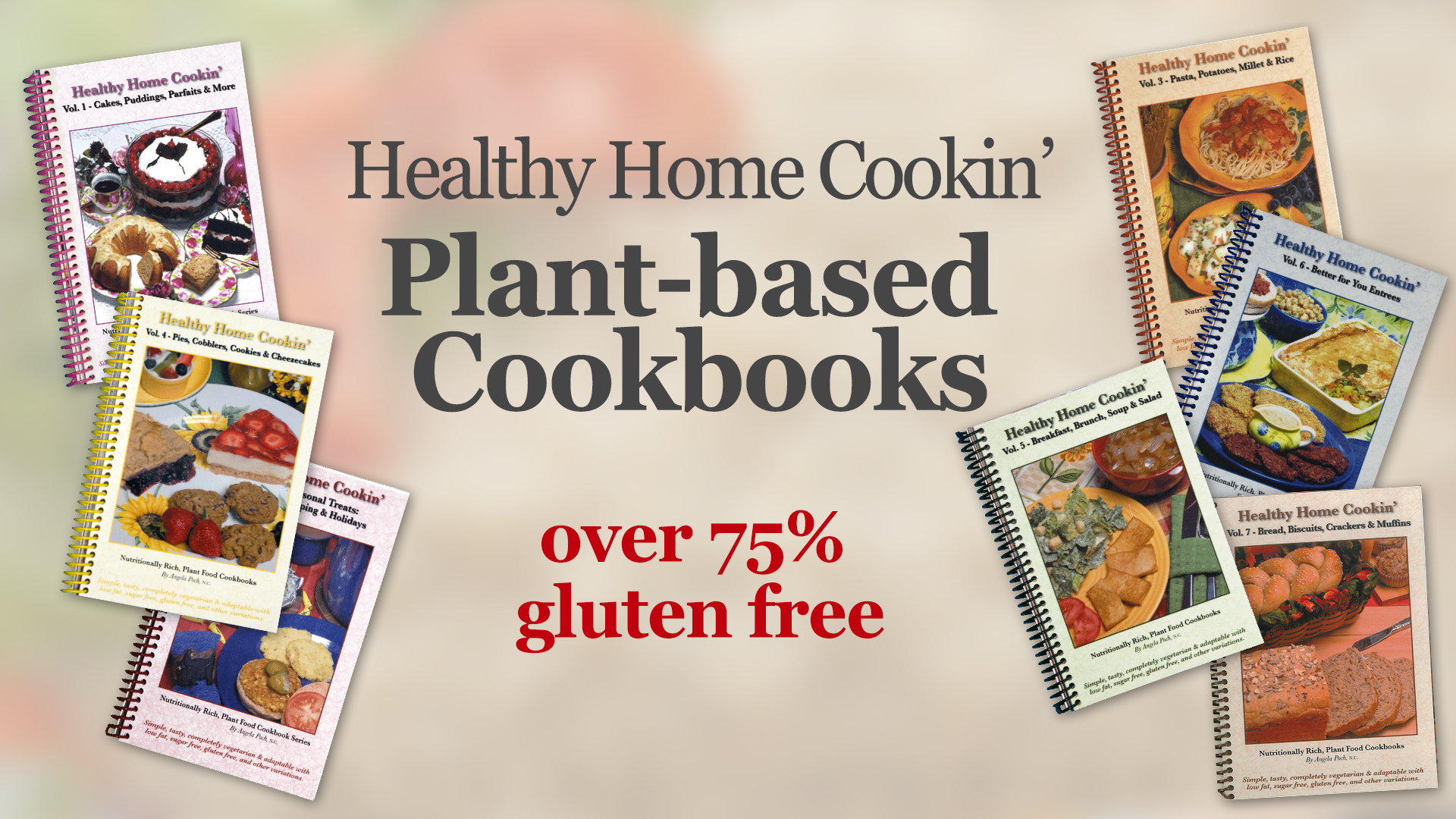 Cookbooks written by Angela Poch, Healthy Home Cookin’ seen on 3ABN – with an emphasis on taste combined with health. Angela has a diploma in Plant-based Nutrition from Total Health School of Nutrition, accredited in Alberta, Canada. These recipes have a heavy emphasis on whole food cooking but there some use of oils and sugar with alternatives if you want to remove those as well. Check out the FREE cookbooks to see more!